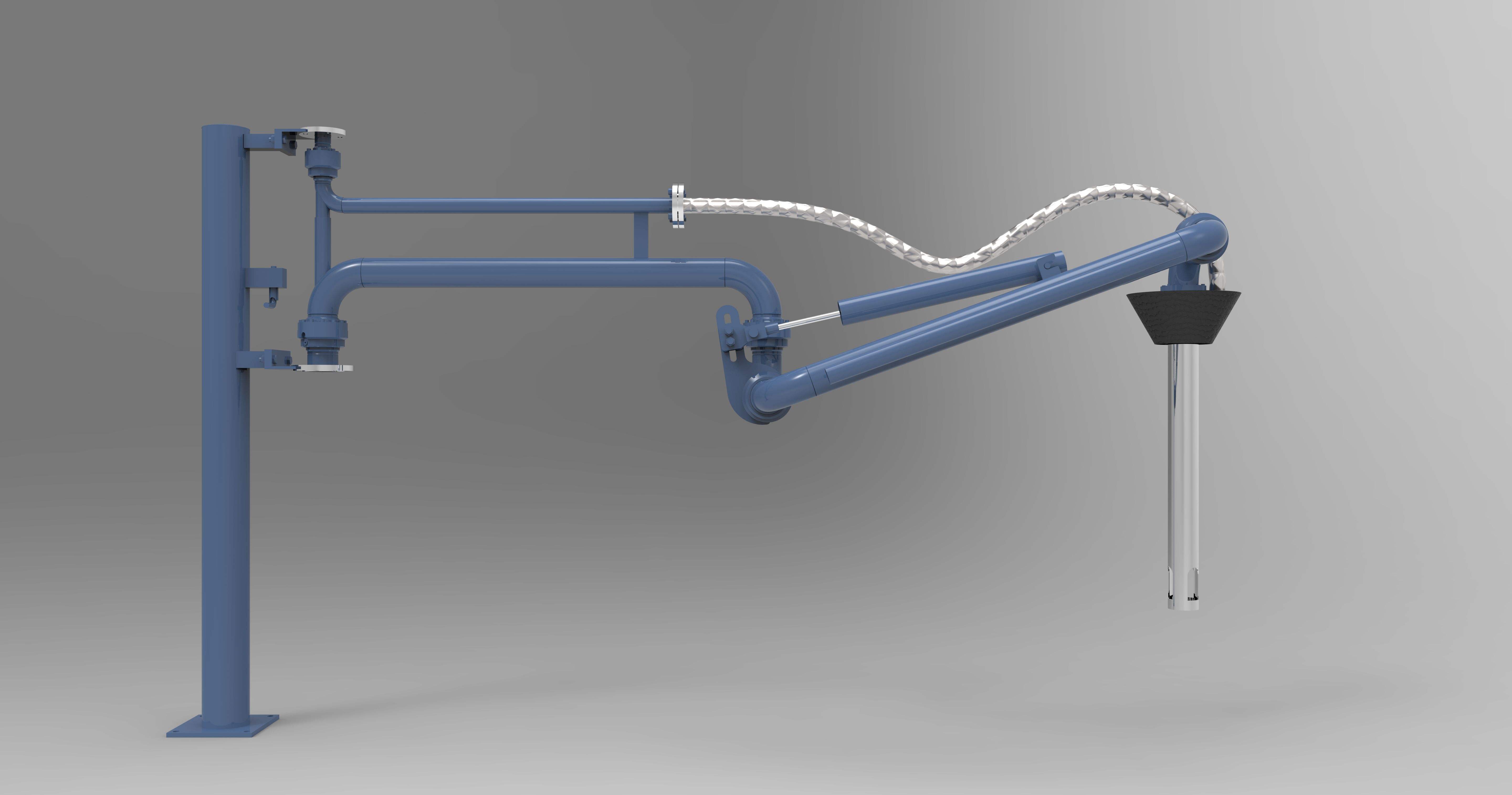 火車鶴管要求鶴管具有足夠的長度及移動空間(高度、水平距離),以保證實現列車進入裝卸棧臺后達到不摘鉤對位、浸沒式裝油和卸油作業的要求,并滿足安全要求。火車鶴管需要氣密性好、輕便靈活、操作方便。